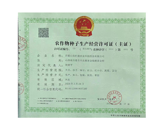 呂梁山花爛漫農(nóng)業(yè)科技股份有限公司是山西省農(nóng)業(yè)產(chǎn)業(yè)化重點龍頭企業(yè),公司成立于2008年,法人代表賀虎平,注冊資本1000 萬元,現(xiàn)有員工 30 人。公司位于興縣蔡家會鎮(zhèn)蔡家會村建有占地面積1萬多平方米生產(chǎn)區(qū)和辦公區(qū),年總加工雜糧能力達到4萬噸。擁有一套日精加工50噸谷子成套設備生產(chǎn)流水線;擁有一套日精加工30噸豆面、蕎面設備流水生產(chǎn)線;擁有一套日精加工50噸紅小豆、豇豆、綠豆、腎型黃豆、紅蕓豆設備流水生產(chǎn)線,2020年引進省農(nóng)科院農(nóng)產(chǎn)品加工研究所谷子精深加工技術(shù),目前設計年產(chǎn)300噸的小米油加工一條龍生產(chǎn)線已經(jīng)安裝調(diào)試完畢,產(chǎn)品經(jīng)化驗達到國家一級油標準,并獲得兩項專利證書。主要產(chǎn)品有“山花爛漫”牌有機小米、綠色小米各種精美包裝系列;蔡家會村豇豆面、豌豆面等雜糧面、手搟豆面系列、以及有機精品雜糧系列。擁有“山花爛漫”山西省著名商標。公司采用線下和線上銷售相結(jié)合的營銷模式。